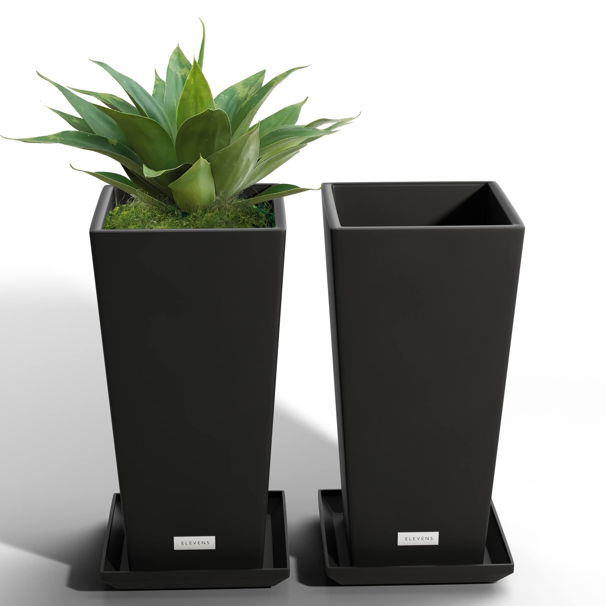 Amazon Com Elevens 2 Pack Black Outdoor Planters 24 Inch Plastic Square Tapered Planters For Indoor Outdoor Plants Large Planters With Tray For Patio Patio Lawn Garden